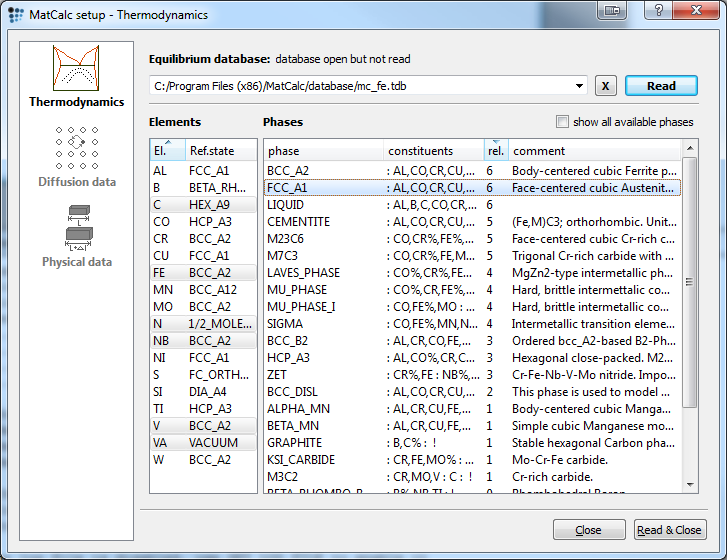 Example E3: Analysis of the miscibility gap in Fe-C-N-Nb-V